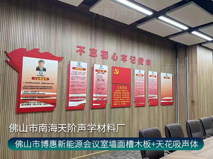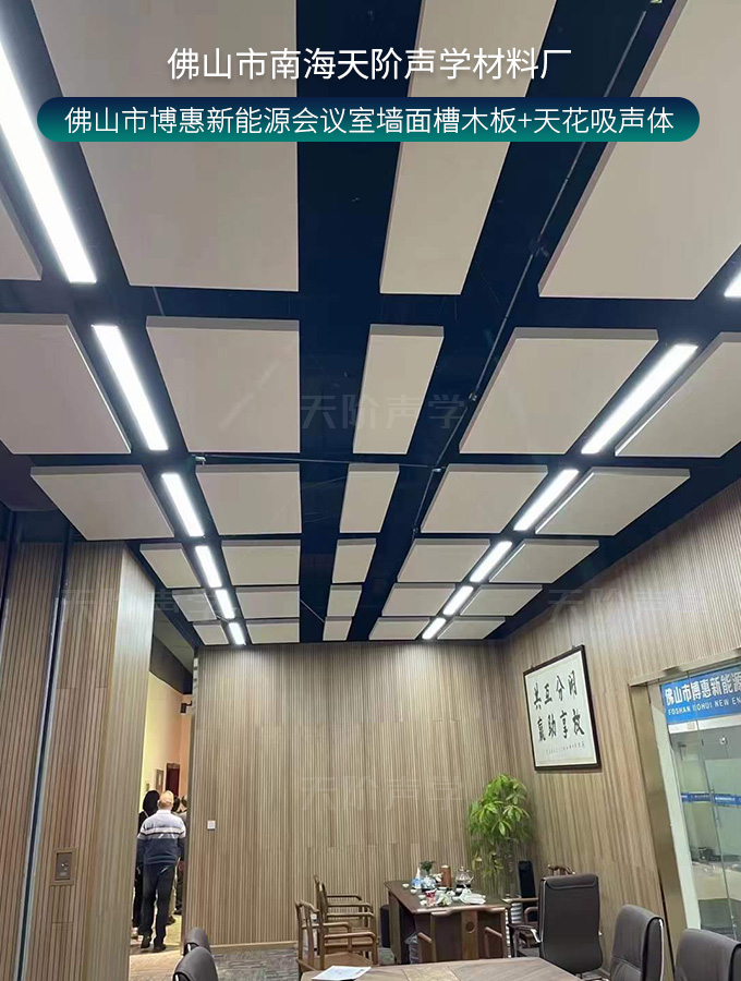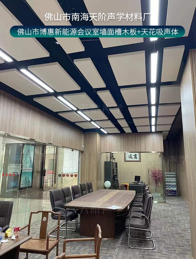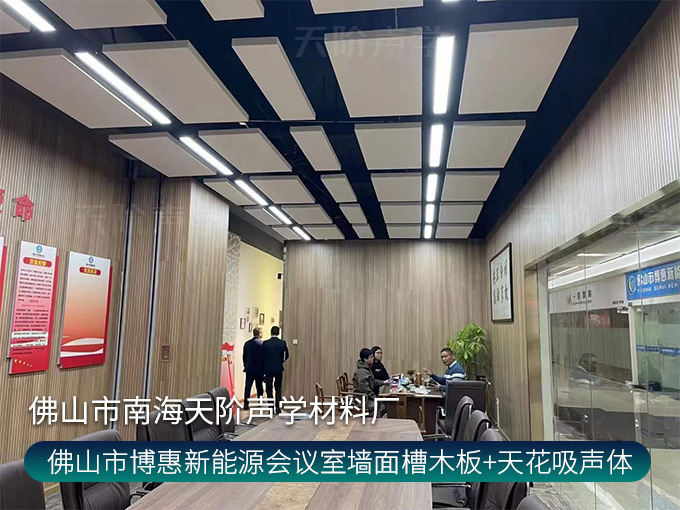 佛山市博惠新能源會(huì)議室墻面槽木板+天花吸聲體