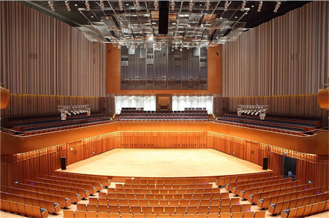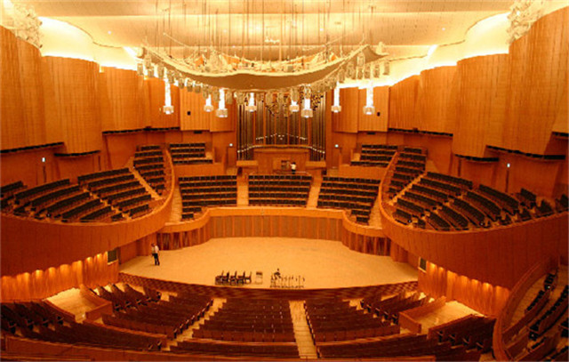 例如,在打開(kāi)窗戶的那一面,由于完全不反射它所碰到的聲音能源,因而吸音率為100%,亦即該面為完全吸音面,但同時(shí)也可能有完全無(wú)法隔音的面存在。室內(nèi)之吸音程度大時(shí),即能壓制室內(nèi)的擴(kuò)散音并降低噪音水平。此方法系遠(yuǎn)離噪音源和影響點(diǎn)時(shí)會(huì)有效果,但若室內(nèi)各處都有噪音源且和影響點(diǎn)之距離相近時(shí),例如窗邊的座位對(duì)由窗戶入侵的聲音,因?yàn)樵胍舻闹苯佑绊懱?,故而其藉由吸音所產(chǎn)生的隔音效果不會(huì)太顯著。音樂(lè)廳聲學(xué)設(shè)計(jì)的指標(biāo)一流的具有高雅文化氛圍的專業(yè)性音樂(lè)廳可供自然聲演出,并適應(yīng)多種風(fēng)格的音樂(lè)作品演出。