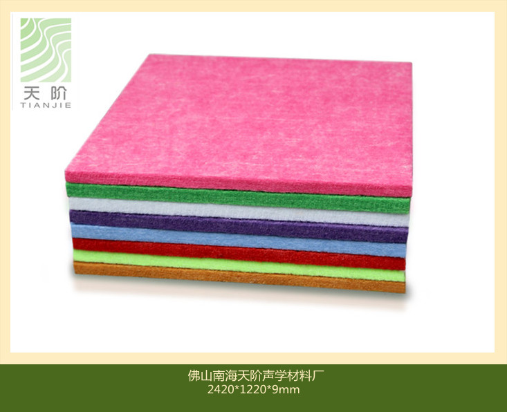(1)聚酯纖維吸音板密度高。首選聚酯纖維吸音板的密度必須要高的,也就是我們說(shuō)的板子要硬才行,這個(gè)相對(duì)于市面上一些便宜的板子稍微貴5元一平米,一份價(jià)格一份貨,這種材質(zhì)的聚酯板,不僅顏色純正,容易倒邊,不起毛球,非常有質(zhì)感,高檔很多。