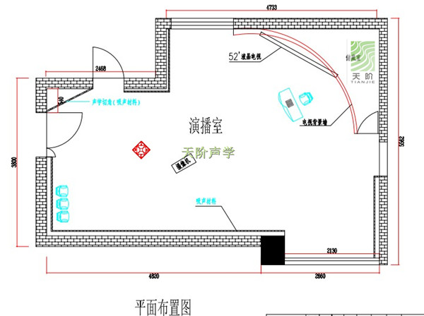經(jīng)過商討最后決定本次演播室吸音工程采用天階牌槽木吸音板和孔木吸音板兩種對吸聲頻譜選擇性很強的吸音材料,兩者搭配出現(xiàn)對中低頻有很好的吸聲性能。