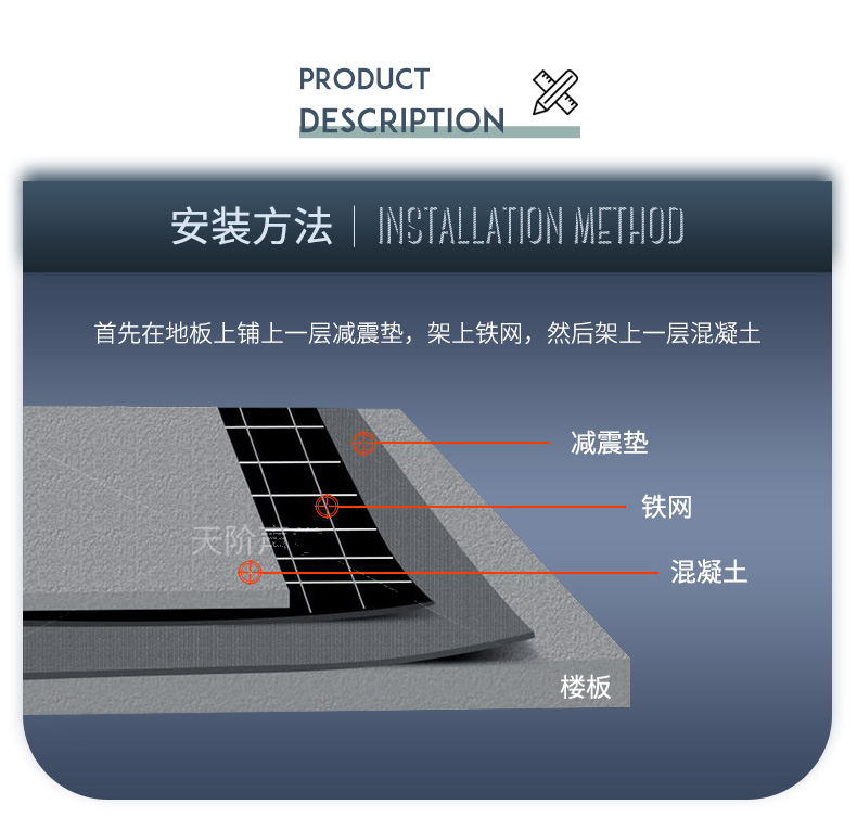 減震墊柔軟性和彎曲性是非常好,高彈力捏壓迅速回彈,恢復原狀。產品柔軟度高,能貼合地面安裝。