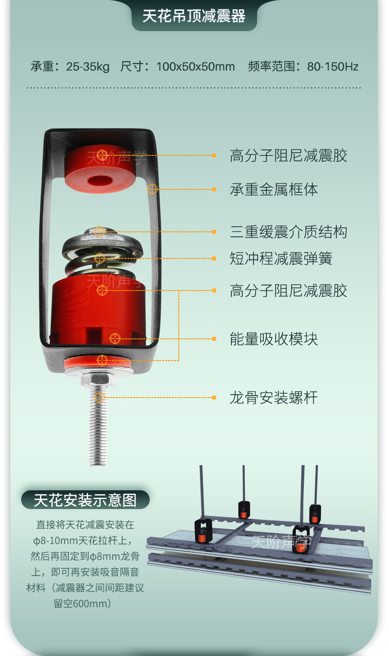 產(chǎn)品:吊頂減震器 承重:25kg-35kg 尺寸:100x50x50mm