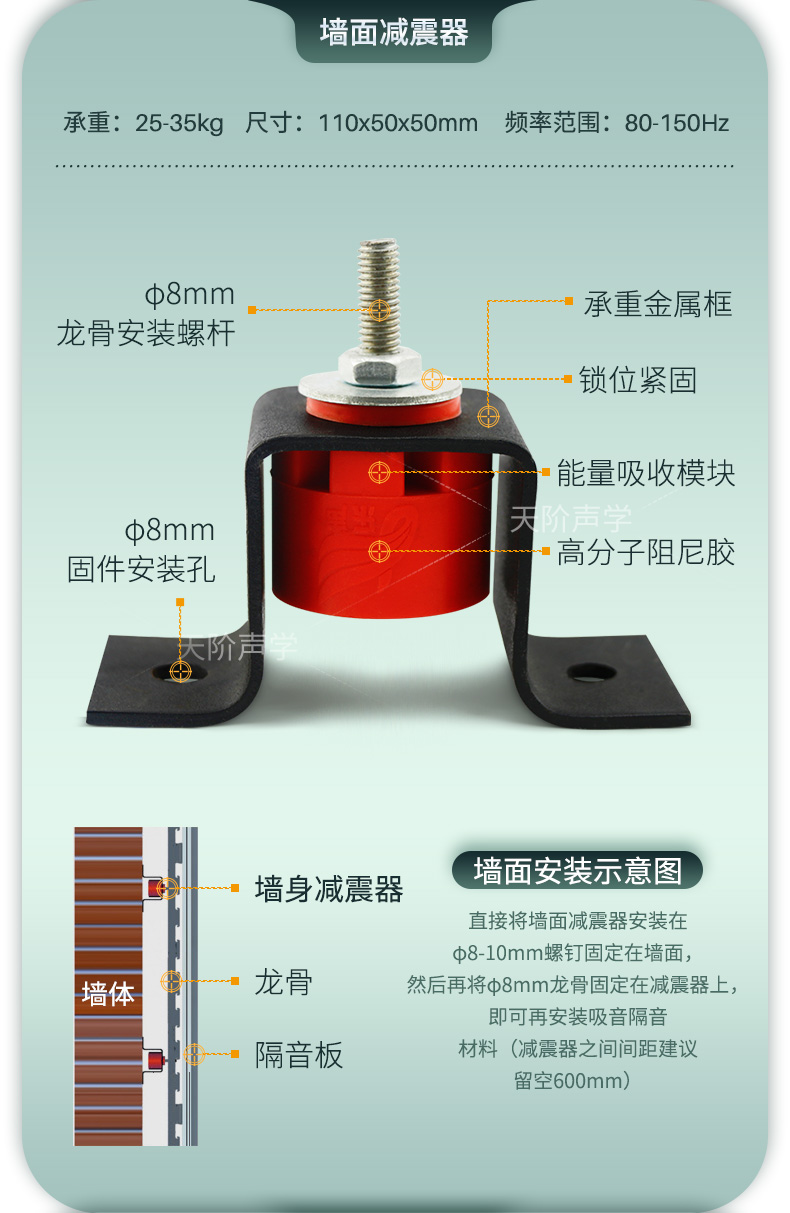 產(chǎn)品:墻面減震器 承重:25kg-35kg 尺寸:110x50x50mm
