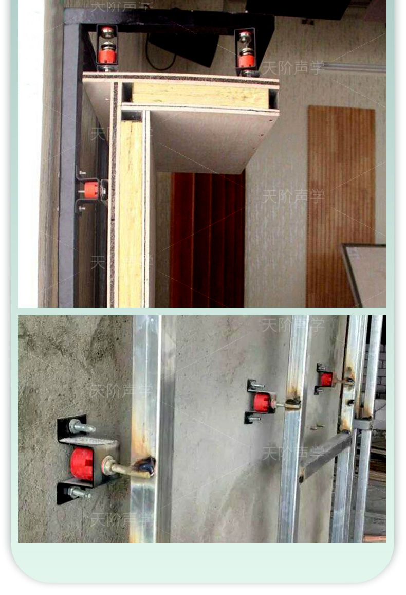 天花墻體隔音減震器是用于天花墻體隔音的必要構(gòu)件。它特有的阻尼橡膠塊可以切斷聲橋的傳播,尤其對(duì)KTV、酒吧里有低音炮的地方,這是重要的隔音系統(tǒng)配件,不然,無論多少隔材料都無法將聲音阻隔于包廂房?jī)?nèi)。