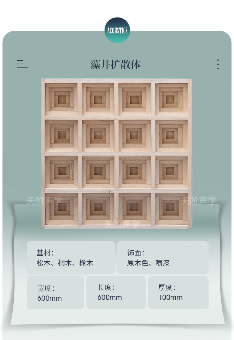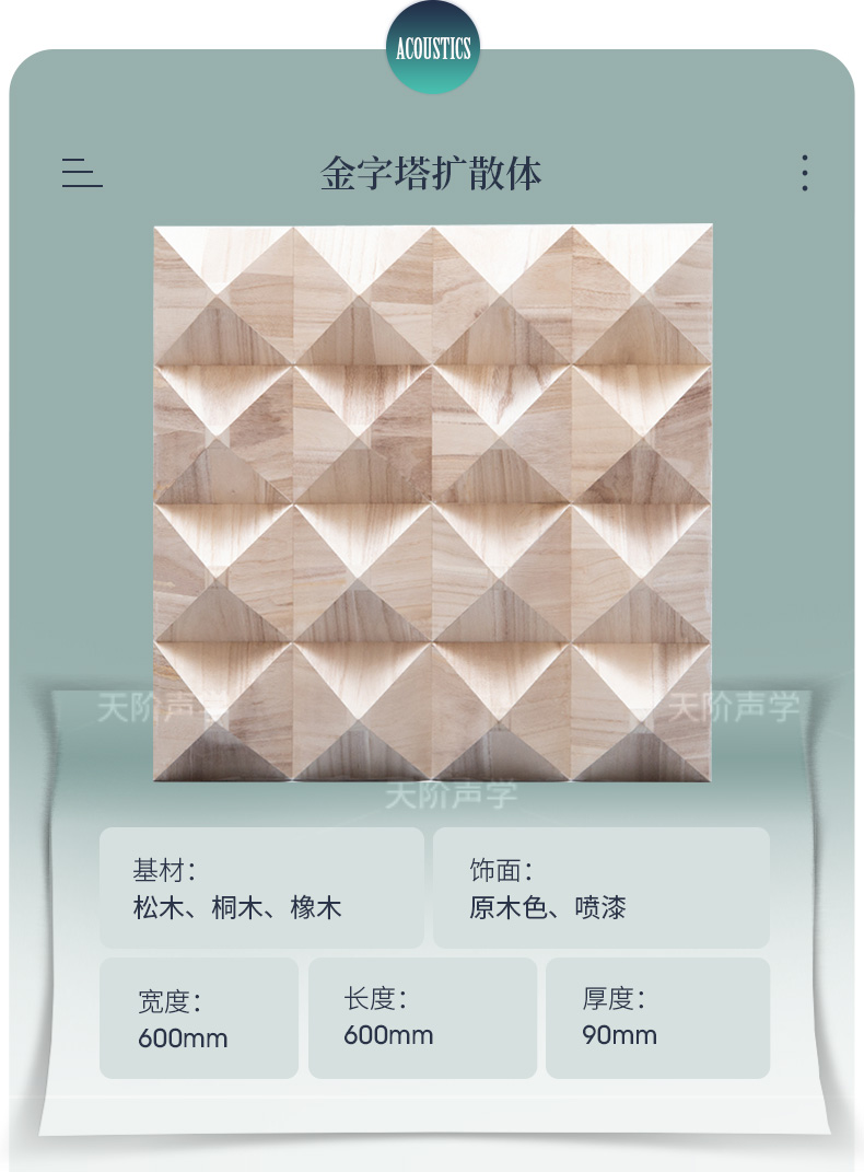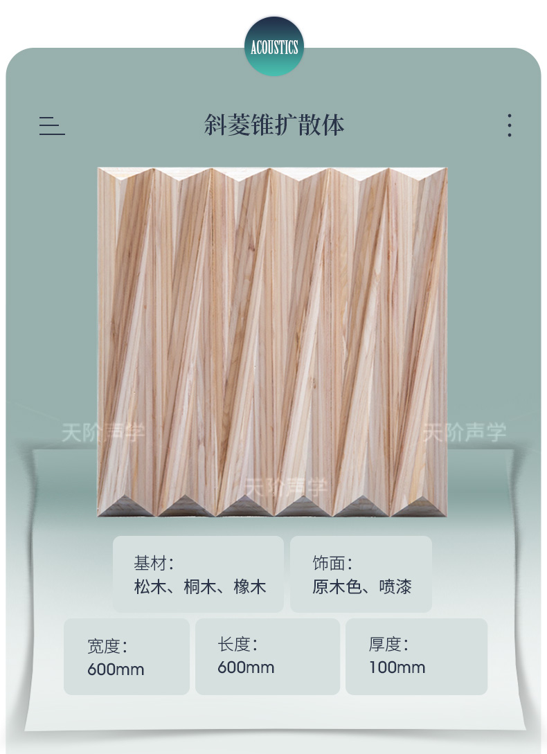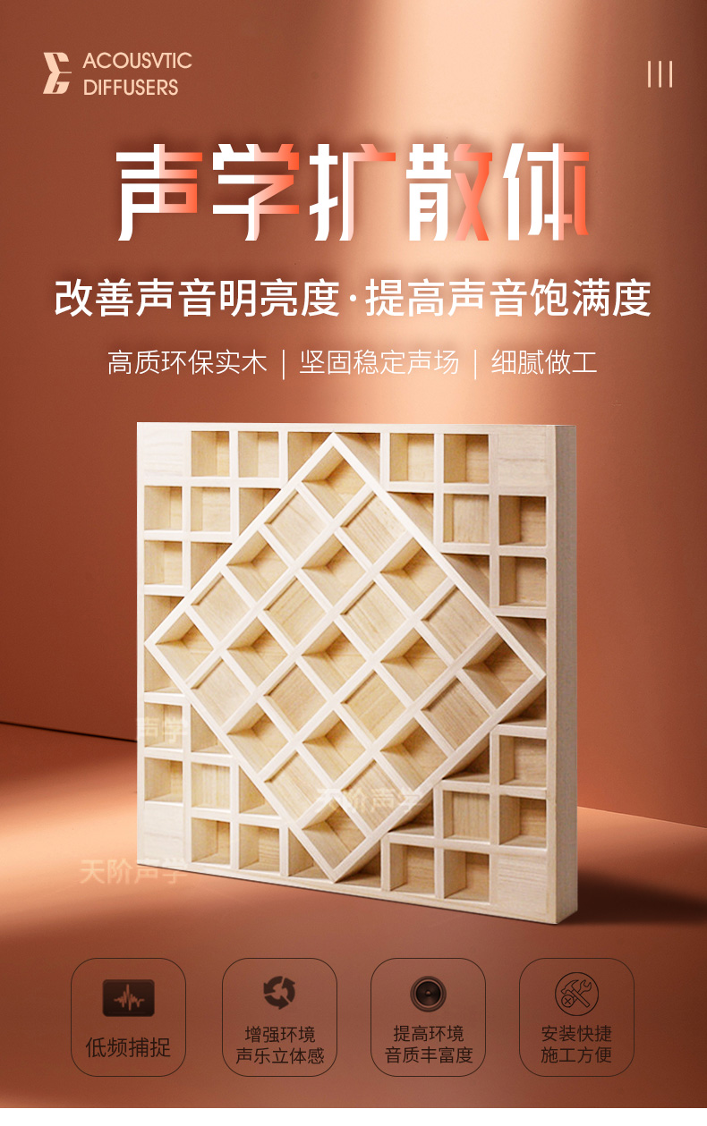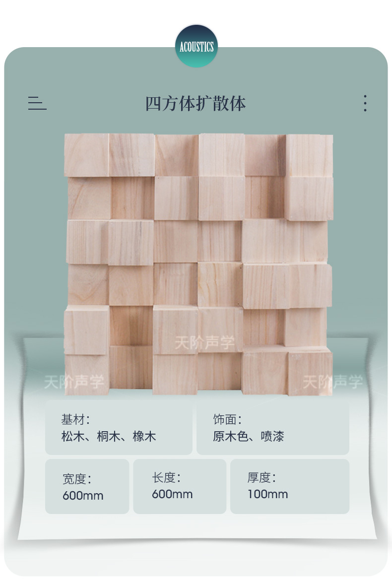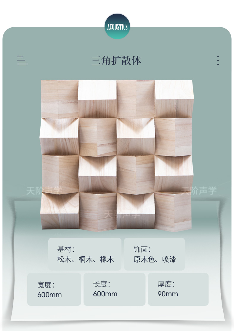 您現(xiàn)在的位置首頁 ? 槽木木質(zhì)吸音板 - 軟包 - 防火吸音板 - 聲學(xué)產(chǎn)品 ? 擴散體木質(zhì)踏步擴散體